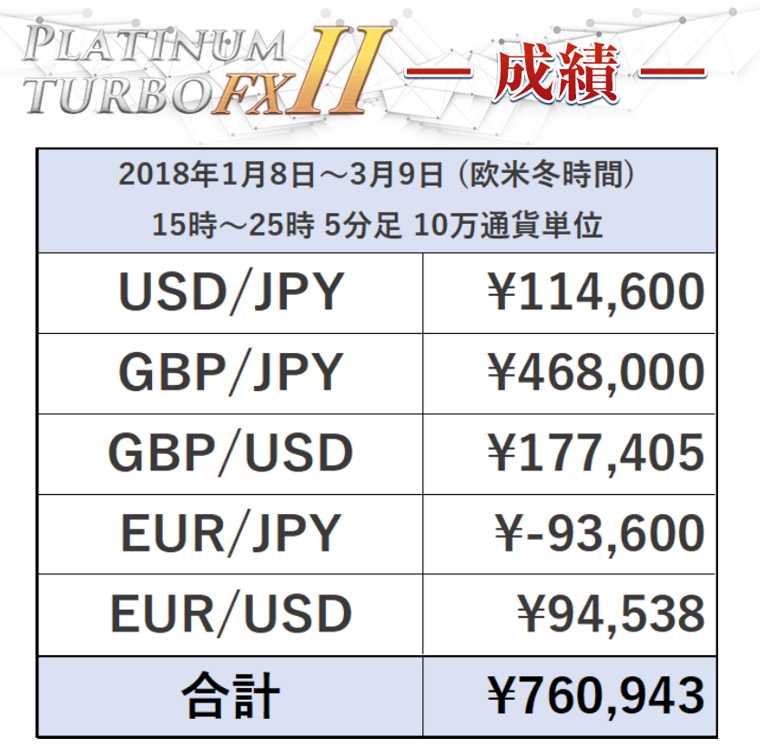 上記は、プラチナターボFX2のサイン通りに従った成績になります。