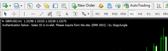 しかも、チャートには「Authentication failure – Sales ID is invalid. Please inquire from the site. (ERR 2021) : by GogoJungle」のエラーが、、