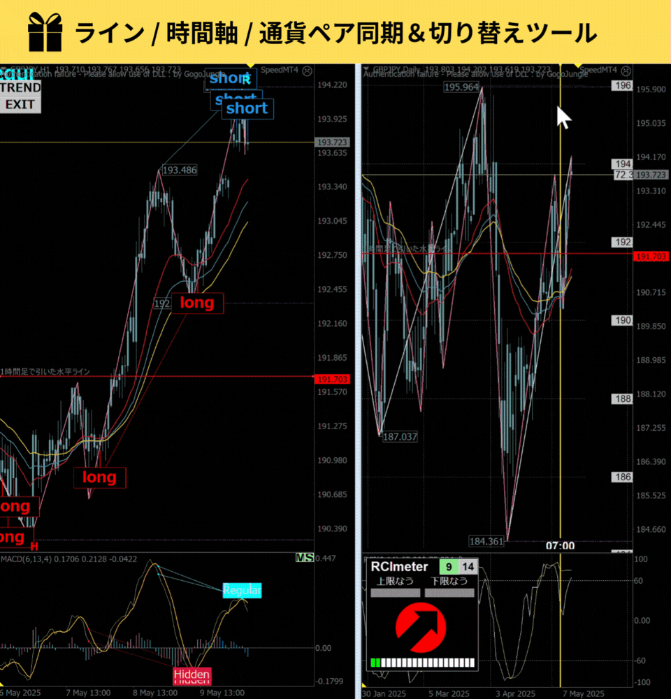 MTF(マルチタイム分析)を自動で計算し、押し目・戻りを狙う感じです